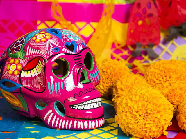 El día de muertos es una de las más bellas tradiciones mexicanas. Se trata de recibir en casa a nuestros muertos, aquellos seres queridos que se nos adelantaron en el camino y a quienes extrañamos; es honrarlos, ponerles un altar con sus cosas predilectas, la comida que más les gustaba, algún objeto que fuera importante para ellos, un vasito con agua. Reencontrarlos de alguna manera. Es una celebración llena de color: el amarillo del cempasúchil, el naranja de las mandarinas, el morado, rojo, azul del papel de china, los muchos tonos de la luz de las veladoras. Acompañados del aroma del incienso, del olor de la comida, el delicioso sabor del pan de muerto, el chocolate y el mole.