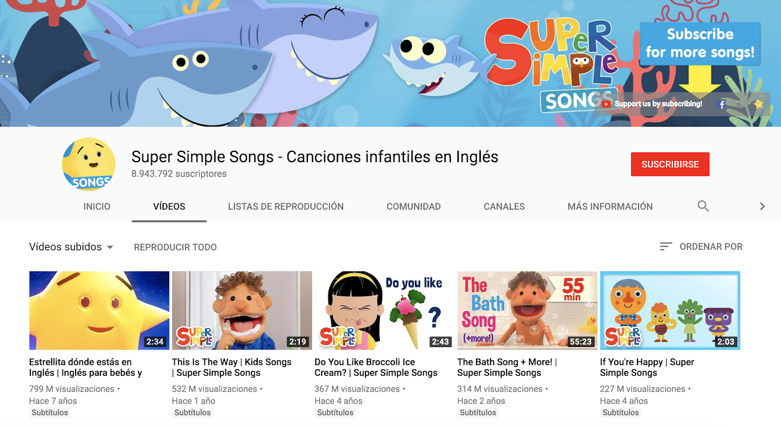 El canal de Youtube se llama Super Simple Songs - Canciones infantiles en Inglés